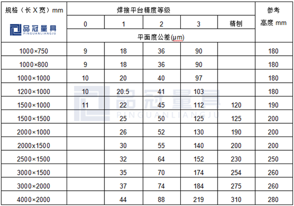 焊接平臺常用尺寸規(guī)格: