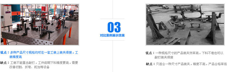4、重復(fù)性:臺(tái)面有鑄鐵/鋼結(jié)構(gòu)件/高精度加工件/模塊化組件組合而成,其性能非常穩(wěn)定,如使用不當(dāng)造成部件損壞時(shí),也不用報(bào)廢整張臺(tái),只要非常少的成本就可以更換單個(gè)部件。焊接平臺(tái)經(jīng)過(guò)特殊加工處理,在焊接過(guò)程中,僅需低廉的防飛濺液即可免除工作臺(tái)表面的焊接飛濺。